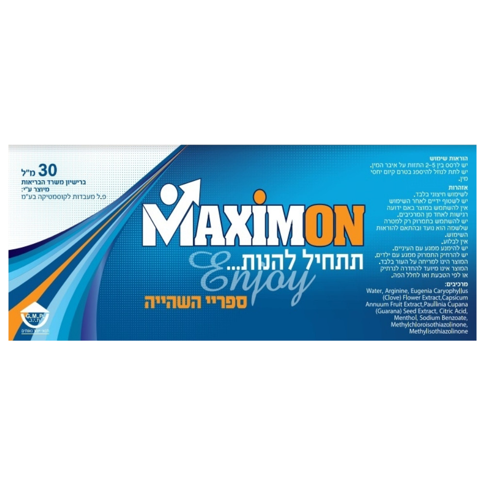 • בעזרת Maximon תוכלו ליהנות מביצועים מיניים משופרים ולחוות חוויה מינית מרוכזת ומהנה. אל תחמיצו את הספריי הטבעי המוביל בשוק – רכשו אותו עוד היום!.