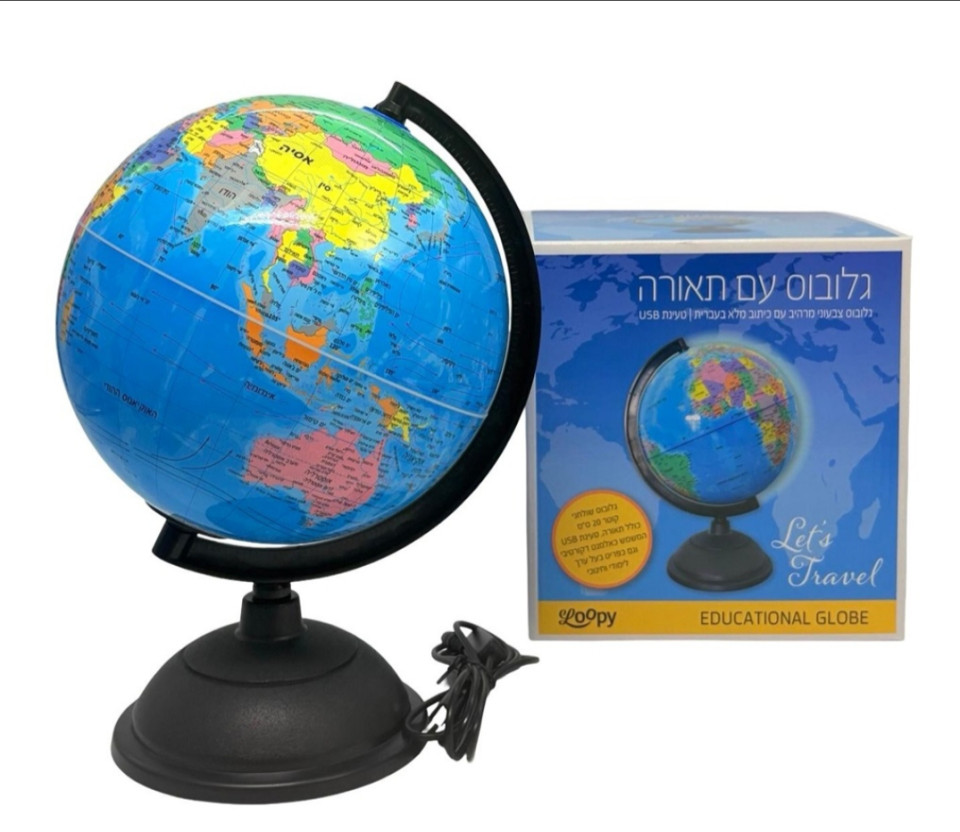 • גלובוס שולחני בעברית עם תאורה.