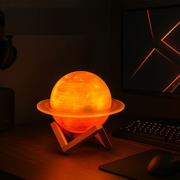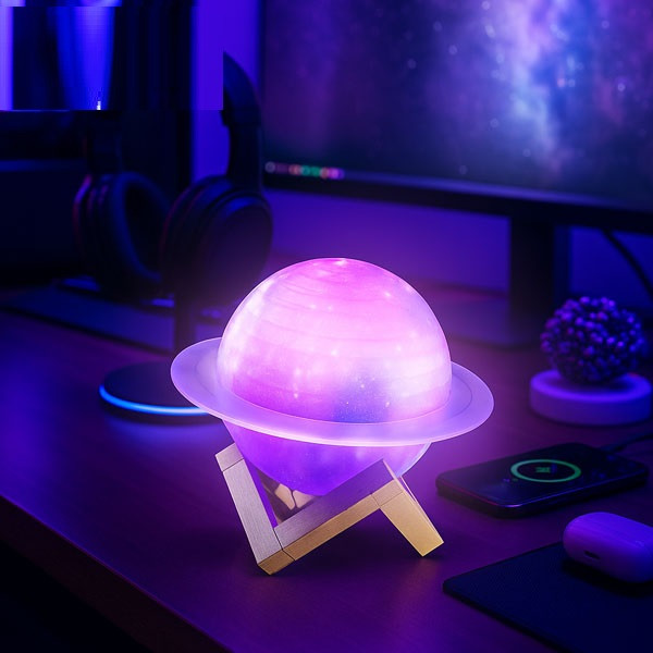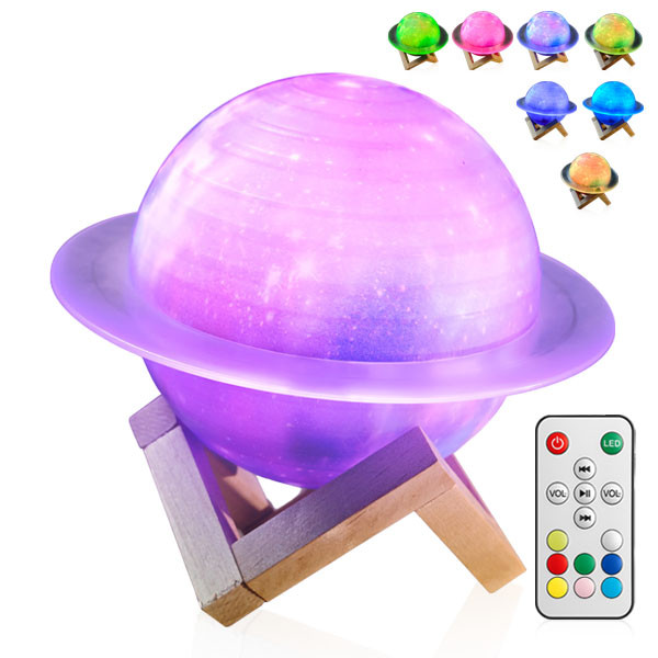 מנורת לילה רמקול בלוטוס מחליף צבעים בצורת כוכב לכת - עיצוב גלקסי שמאיר את הדמיון ואת החדר. הכניסו אווירה קסומה לכל חדר עם מנורת תלת מימד מדהימה בעצוב כוכב לכת. המנורה היא בנוסף גם רמקול בלוטוס וכוללת שלט המאפשר החלפת צבעים.